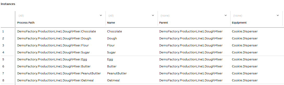 - Process Path (e.g. DemoFactory.ProductionLine1.DoughMixer)